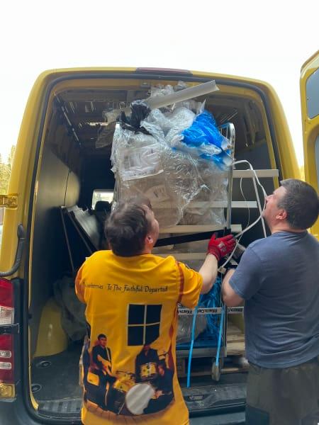 Vi gjorde en liten insats genom att leverera lastpallar till en frivilligorganisation i Pirkkala för transport av donationsvaror till Ukraina.